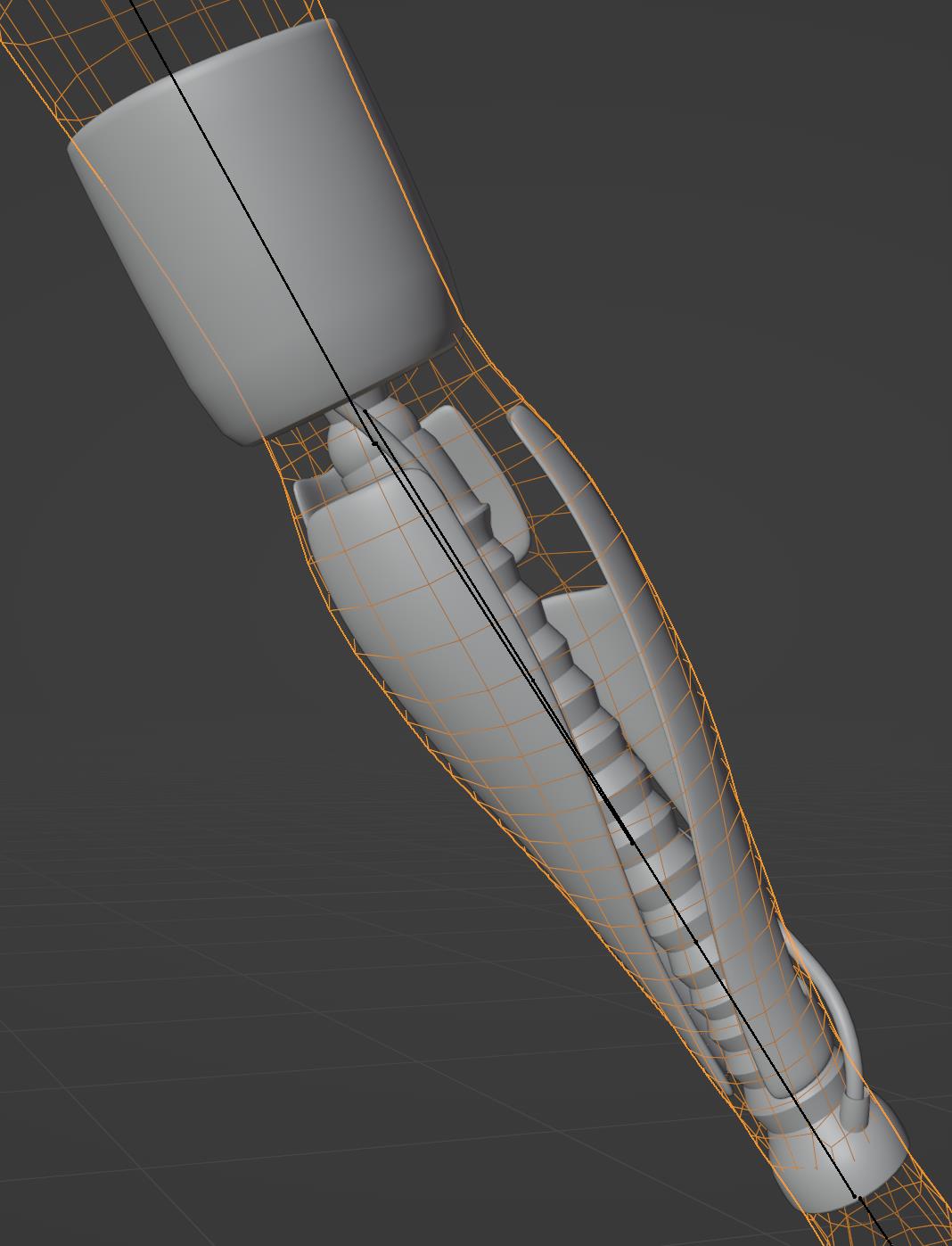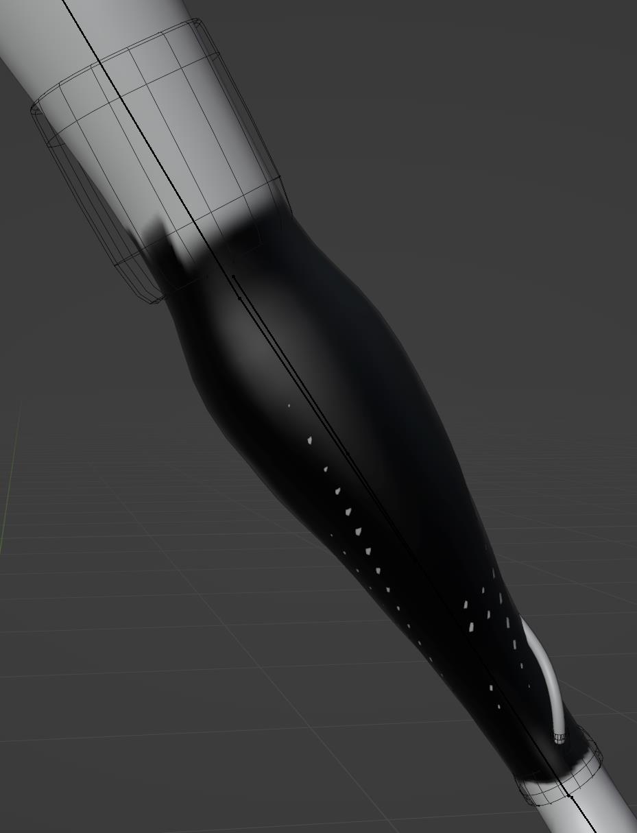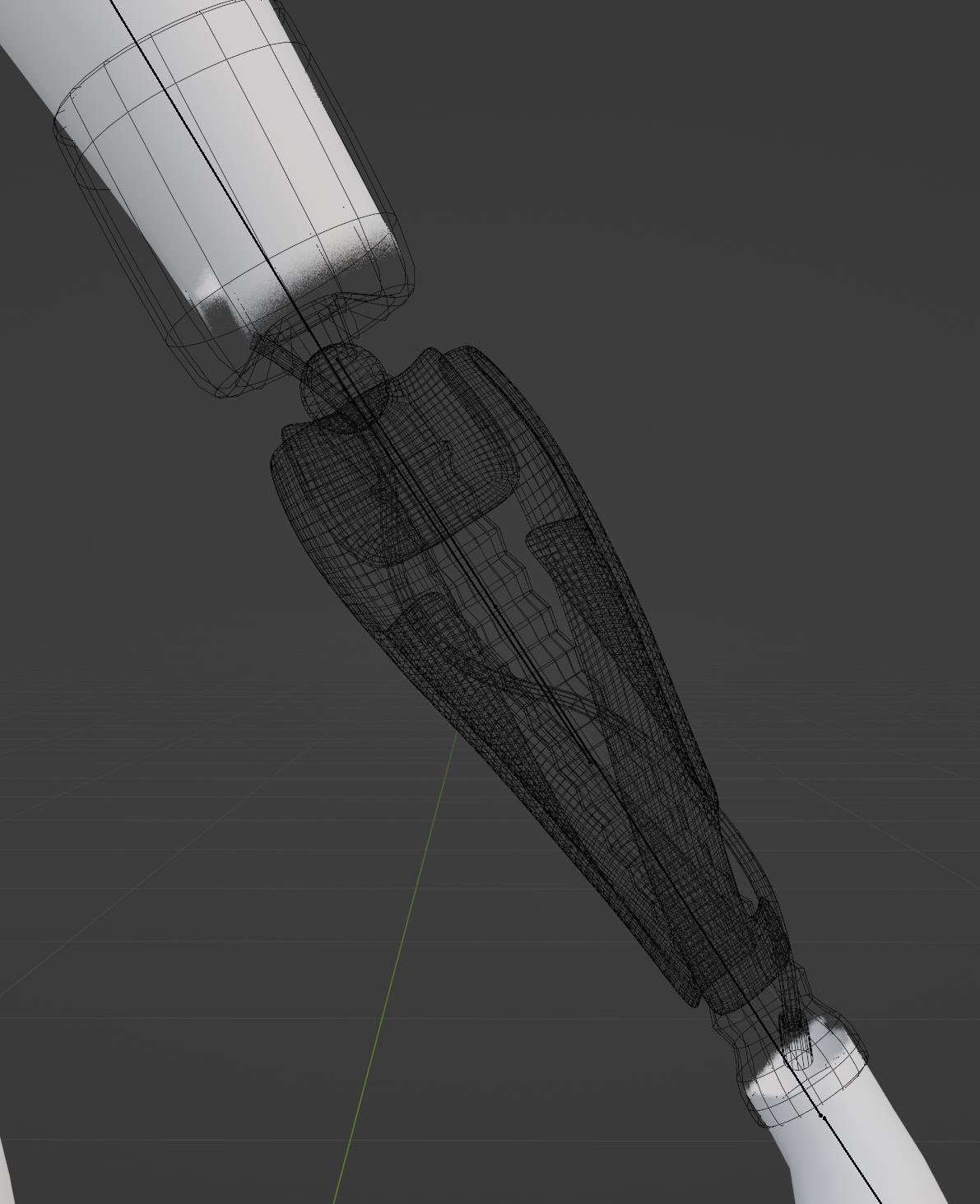 In addition to our mesh, we want to add a design to HD-chan's skin at the point where it meets the robot arm. We can achieve this using a decal: